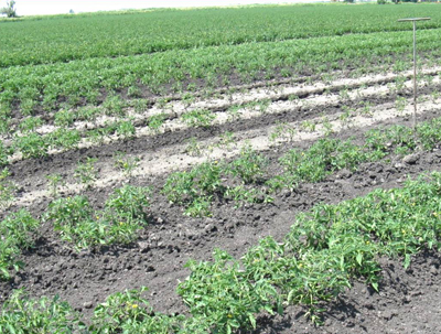 Salt efflorescence affecting tomato plant growth in Mezzano valley (photo by Raimondi)