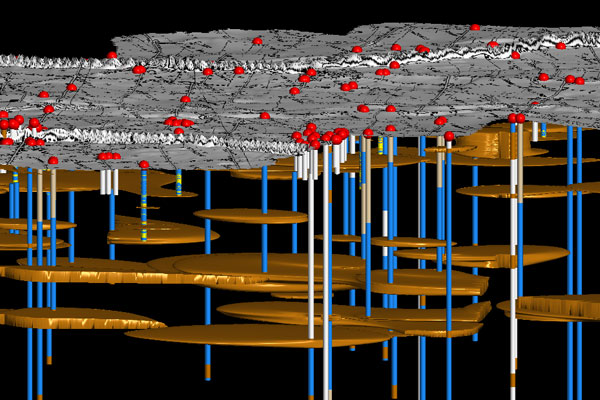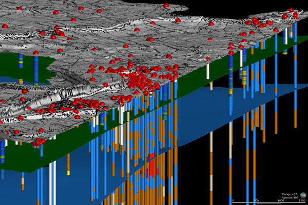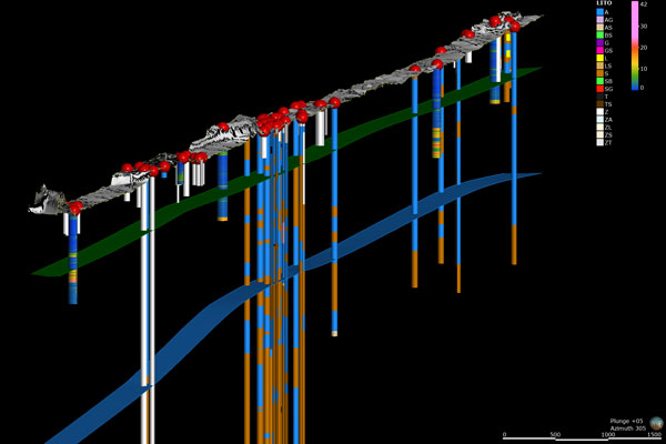 La rappresentazione 3D della Banca Dati delle Prove Geognostiche costituisce uno dei primi esempi di gestione e visualizzazione delle informazioni del sottosuolo in ambiente tridimensionale Sondaggi, pozzi, prove penetrometriche ed altri tipi di indagini vengono raffigurati in maniera simbolica come cilindri con segmenti colorati a seconda del contenuto litologico del terreno attraversato.