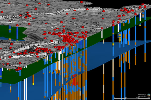 Banche Dati. In quest’area convergono gran parte dei dati geologici e territoriali provenienti dalle banche dati del SGSS. A questo gruppo appartengono le informazioni relative alle prove geognostiche (banca dati geognostica), quali carotaggi e penetrometrie. L’ambiente 3D rende immediatamente percettibili caratteristiche di interesse basilare quali profondità, composizione litologica e distribuzione spaziale.